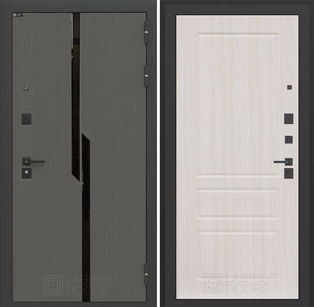 Отделка снаружи: Декоративная MDF панель 10 мм с черным стеклом фацет, цвет «Лофт графит» с металлическим наличником