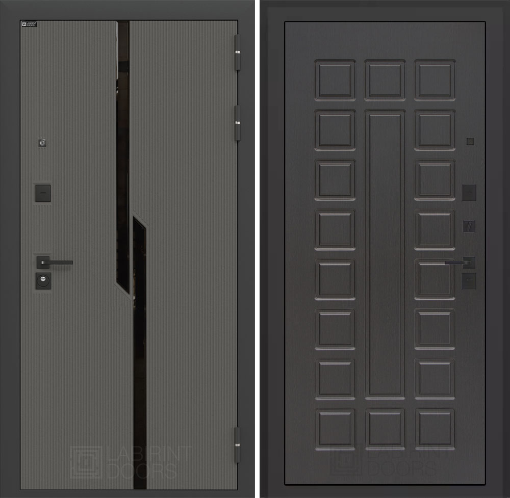 Отделка снаружи: Декоративная MDF панель 10 мм с черным стеклом фацет, цвет «Лофт графит» с металлическим наличником