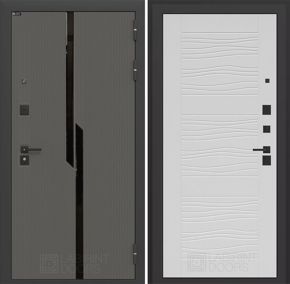 Отделка снаружи: Декоративная MDF панель 10 мм с черным стеклом фацет, цвет «Лофт графит» с металлическим наличником