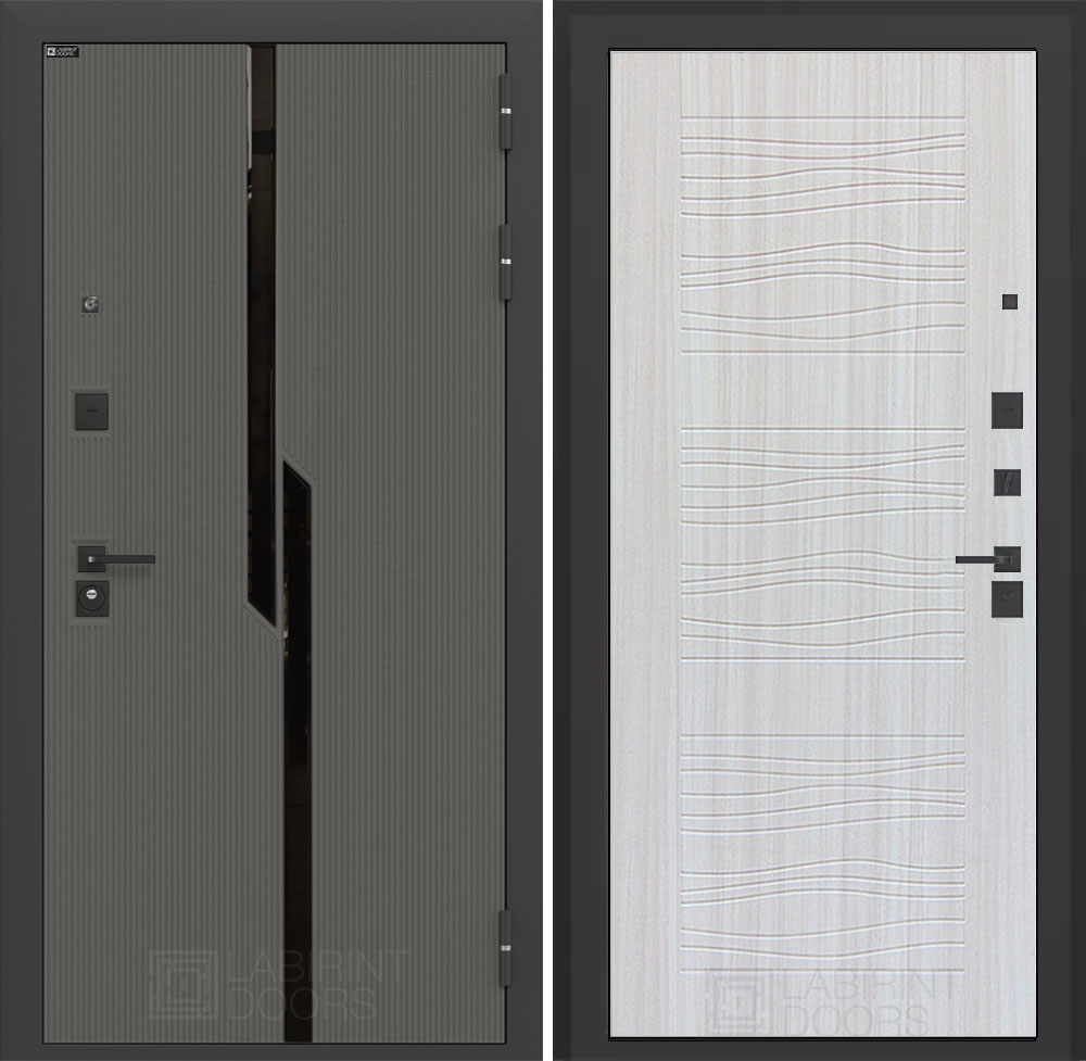 Отделка снаружи: Декоративная MDF панель 10 мм с черным стеклом фацет, цвет «Лофт графит» с металлическим наличником