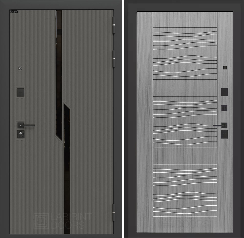 Отделка снаружи: Декоративная MDF панель 10 мм с черным стеклом фацет, цвет «Лофт графит» с металлическим наличником