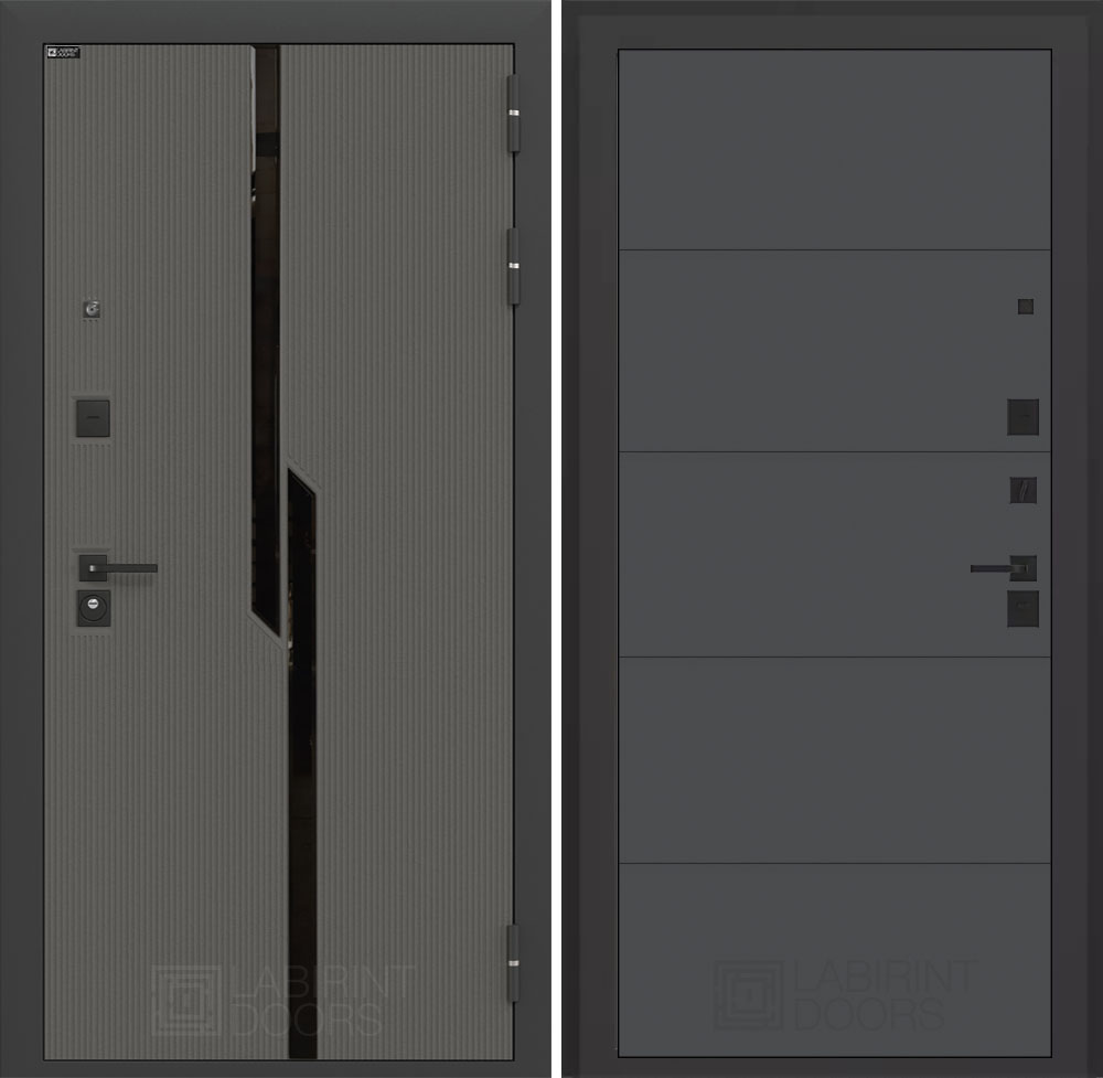 Отделка снаружи: Декоративная MDF панель 10 мм с черным стеклом фацет, цвет «Лофт графит» с металлическим наличником