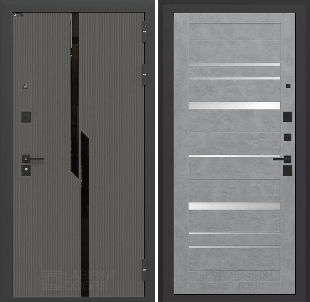 Входная дверь CARBON 20 — Бетон светлый, зеркальные вставки