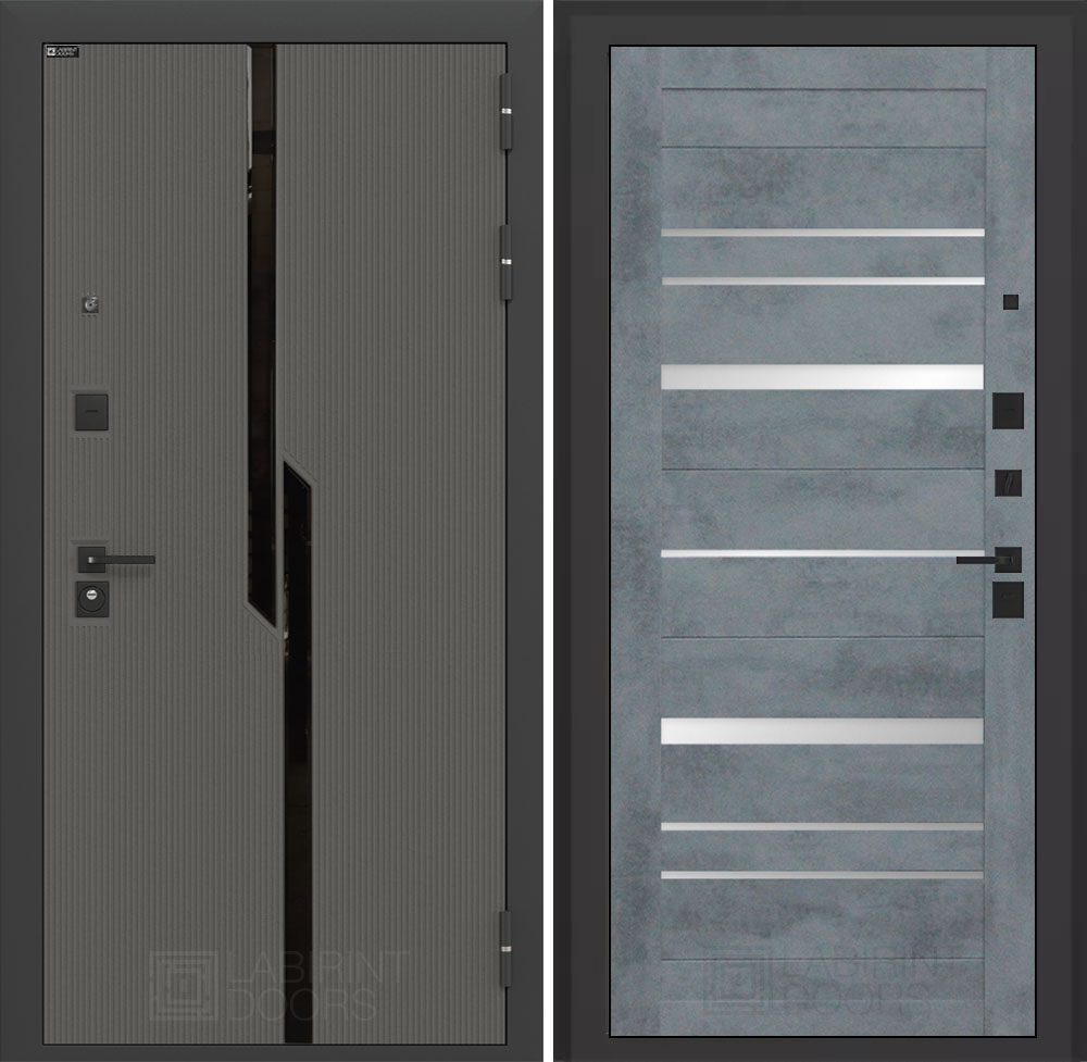 Отделка снаружи: Декоративная MDF панель 10 мм с черным стеклом фацет, цвет «Лофт графит» с металлическим наличником