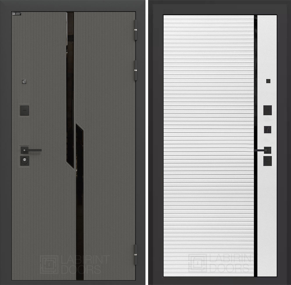 Отделка снаружи: Декоративная MDF панель 10 мм с черным стеклом фацет, цвет «Лофт графит» с металлическим наличником