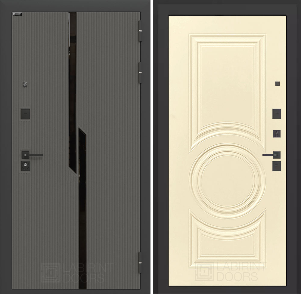 Отделка снаружи: Декоративная MDF панель 10 мм с черным стеклом фацет, цвет «Лофт графит» с металлическим наличником
