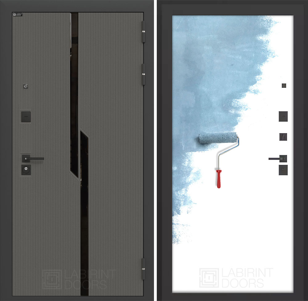Отделка снаружи: Декоративная MDF панель 10 мм с черным стеклом фацет, цвет «Лофт графит» с металлическим наличником