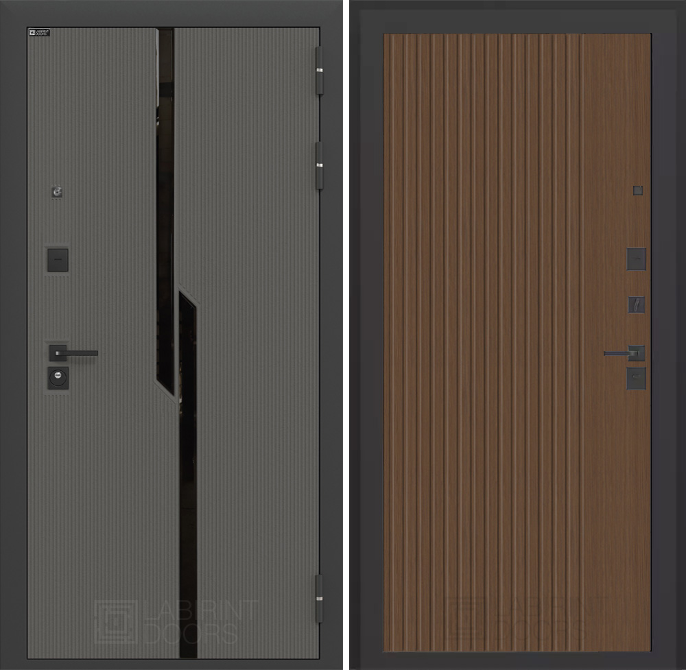 Отделка снаружи: Декоративная MDF панель 10 мм с черным стеклом фацет, цвет «Лофт графит» с металлическим наличником