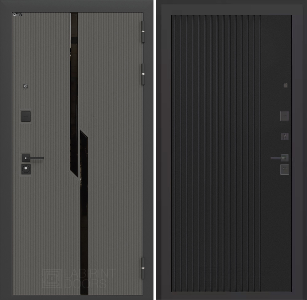Отделка снаружи: Декоративная MDF панель 10 мм с черным стеклом фацет, цвет «Лофт графит» с металлическим наличником