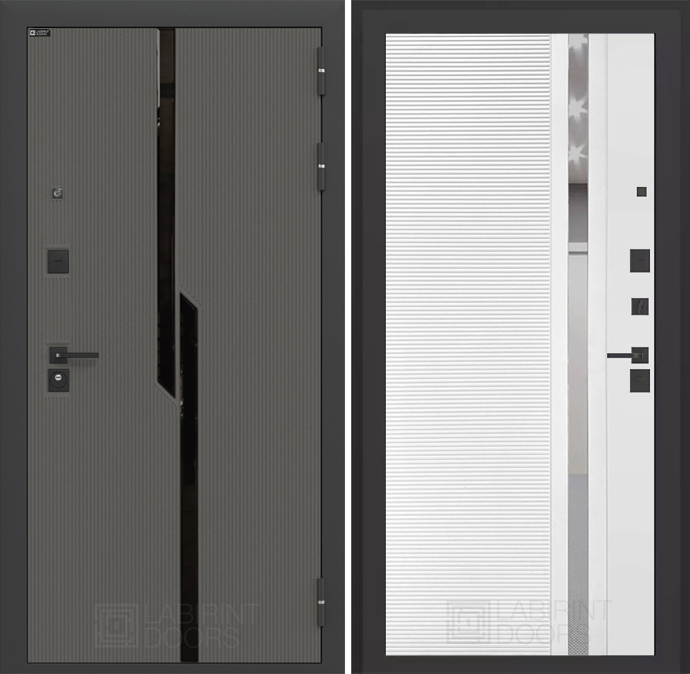 Отделка снаружи: Декоративная MDF панель 10 мм с черным стеклом фацет, цвет «Лофт графит» с металлическим наличником
