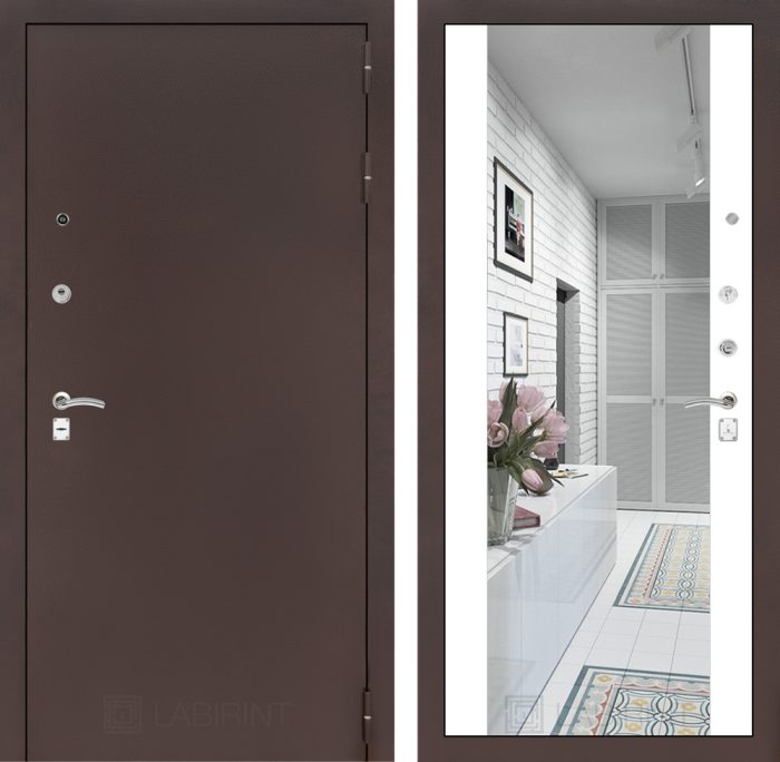 Входная дверь CLASSIC антик медный с Зеркалом Максимум — Белый софт