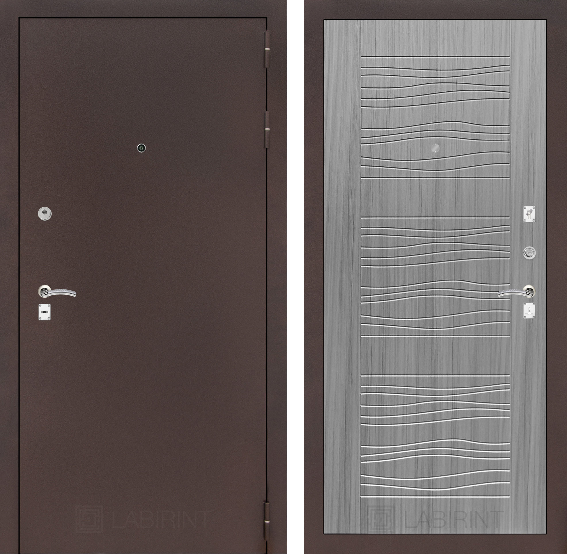 Полный комплект: Броненакладка накладная, декоративная накладка, глазок , дверная ручка, ночная задвижка, цилиндр ключ-вертушка (производитель не регламентируется), регулируемый эксцентрик.’