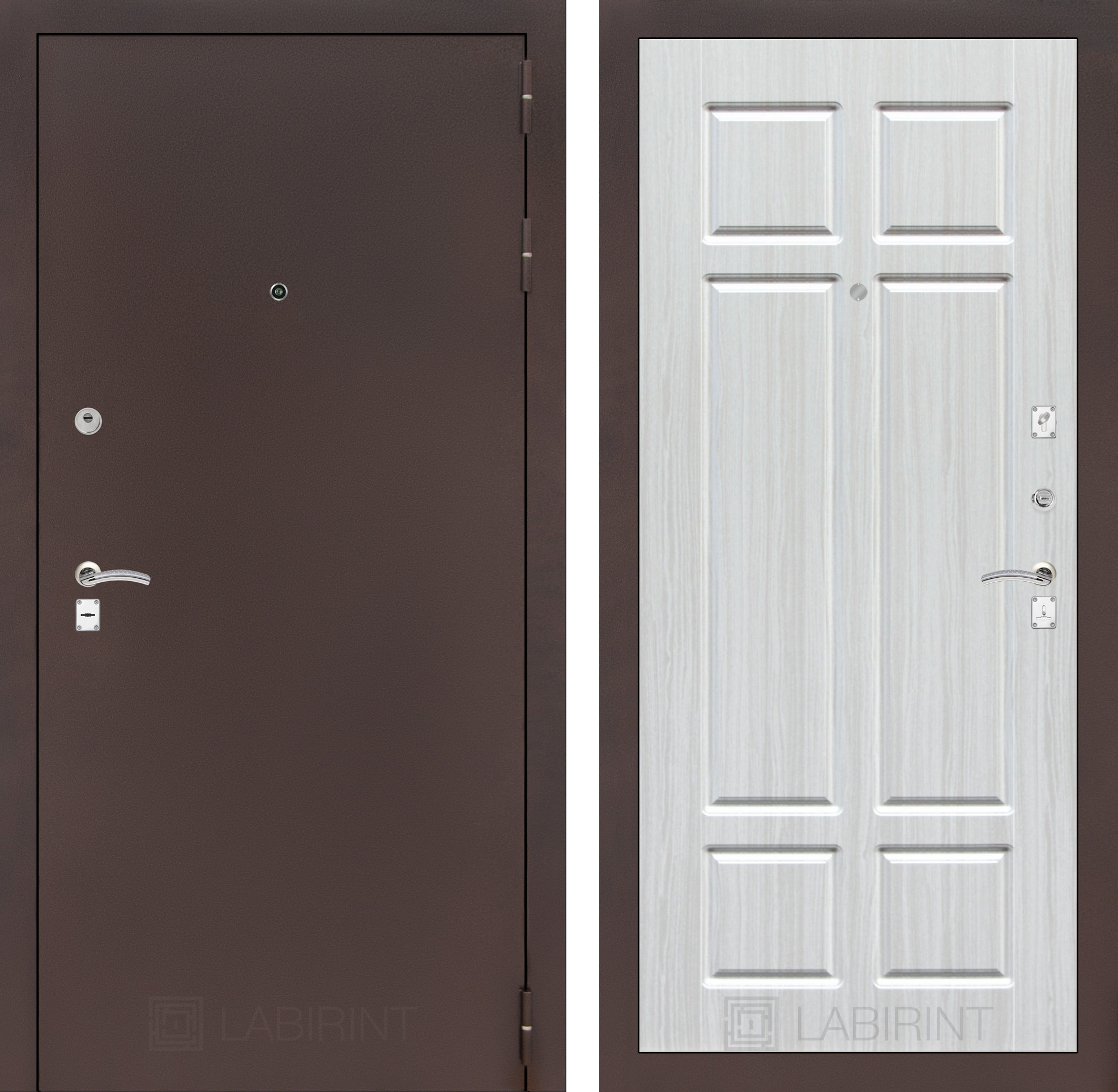 Полный комплект: Броненакладка накладная, декоративная накладка, глазок , дверная ручка, ночная задвижка, цилиндр ключ-вертушка (производитель не регламентируется), регулируемый эксцентрик.’