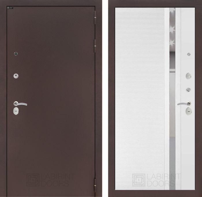 Входная дверь CLASSIC антик медный 31 — Белый софт, зеркальная вставка с тонировкой