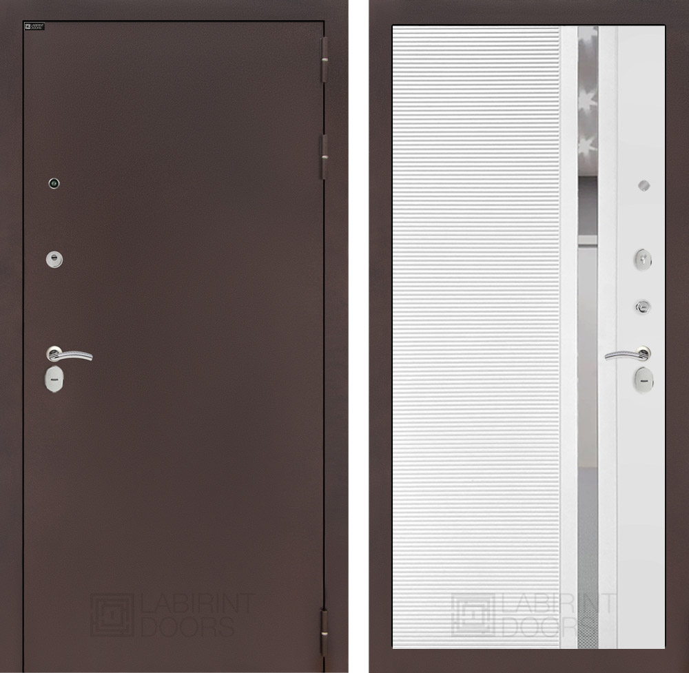 Внутренняя отделка: Фрезерованная МДФ панель 10 мм с зеркальной тонированной вставкой 60 мм, цвет «Белый софт»