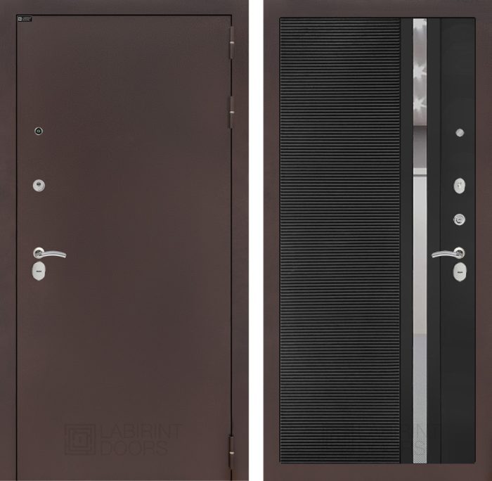Главная Двери комфорт CLASSIC Входная дверь CLASSIC антик медный 31 — Черный кварц, зеркальная вставка с тонировкой