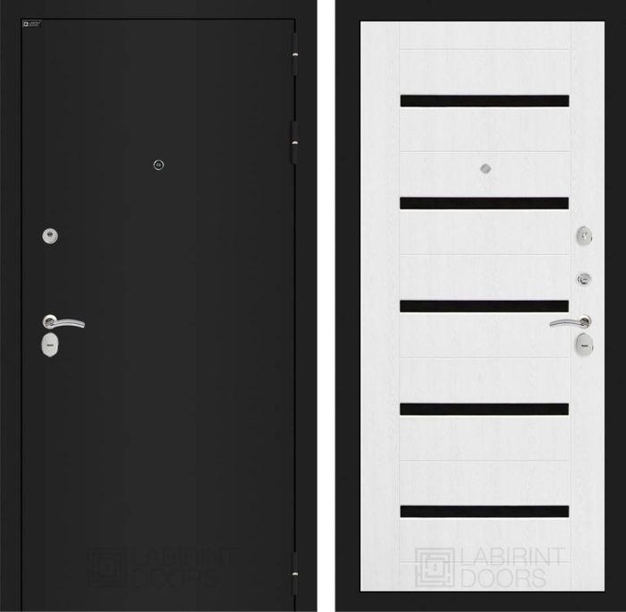 Главная Двери комфорт CLASSIC Входная дверь CLASSIC шагрень черная 01 — Белое дерево, стекло черное