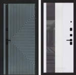 Отделка снаружи: Фрезерованная МДФ панель 10 мм, цвет «Velutto Verde» с патиной и вставкой из металла в цвет наличника