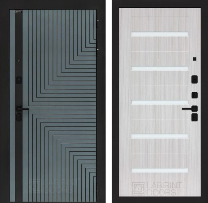 Отделка снаружи=’Фрезерованная МДФ панель 10 мм, цвет «Velutto Verde» с патиной и вставкой из металла в цвет наличника’