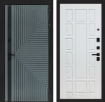 Отделка снаружи: Фрезерованная МДФ панель 10 мм, цвет «Velutto Verde» с патиной и вставкой из металла в цвет наличника