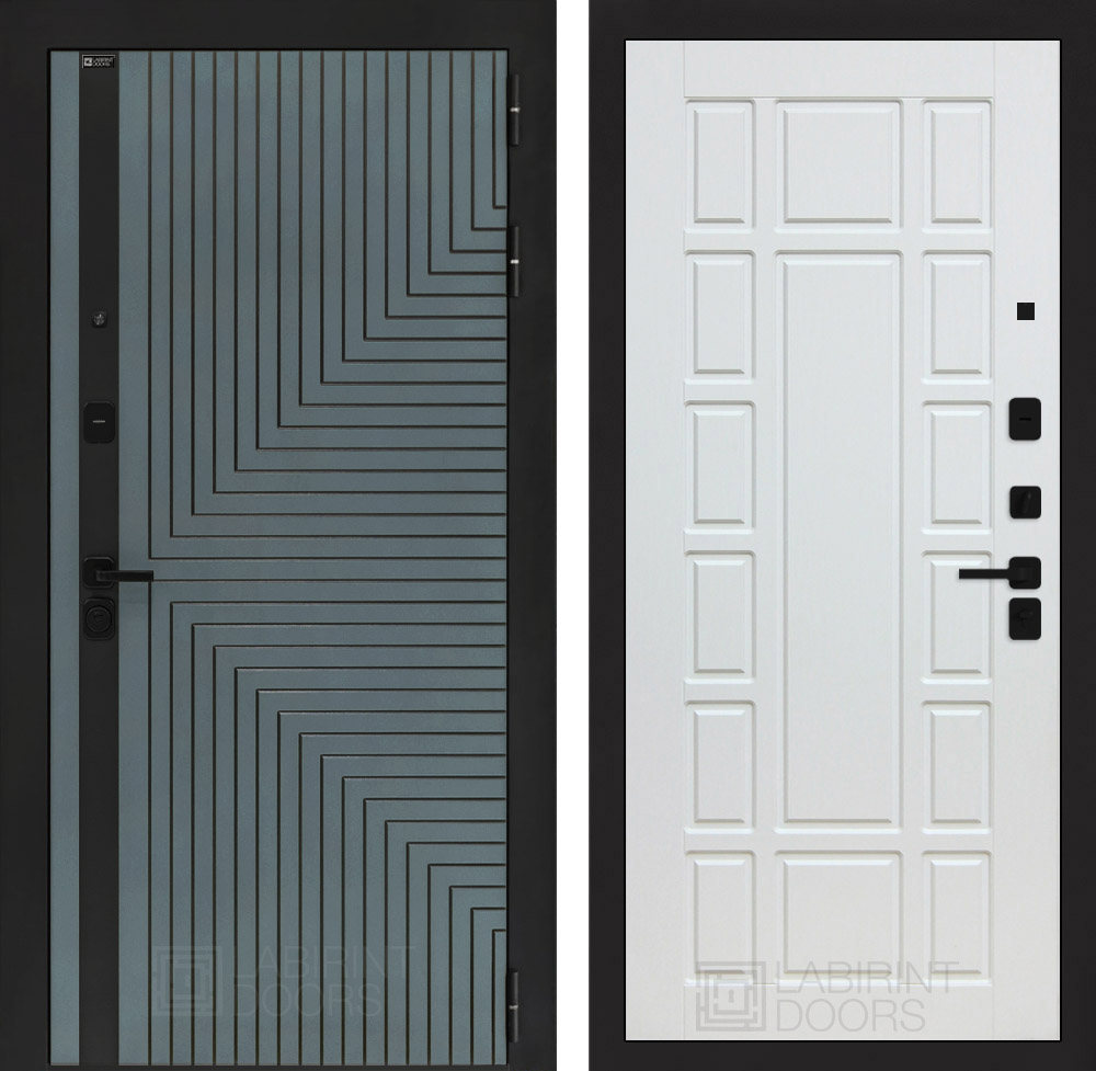 Полный комплект: Фурнитура в черном цвете: Броненакладка врезная, накладка со шторкой, глазок , дверная ручка, ночная задвижка. Цилиндр ключ-вертушка (производитель не регламентируется), регулируемый эксцентрик.