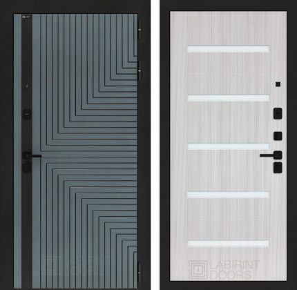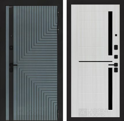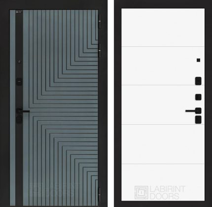 Отделка снаружи=’Фрезерованная МДФ панель 10 мм, цвет «Velutto Verde» с патиной и вставкой из металла в цвет наличника’