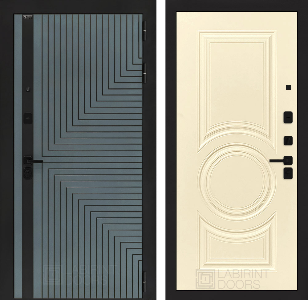 Полный комплект: Фурнитура в черном цвете: Броненакладка врезная, накладка со шторкой, глазок , дверная ручка, ночная задвижка. Цилиндр ключ-вертушка (производитель не регламентируется), регулируемый эксцентрик.