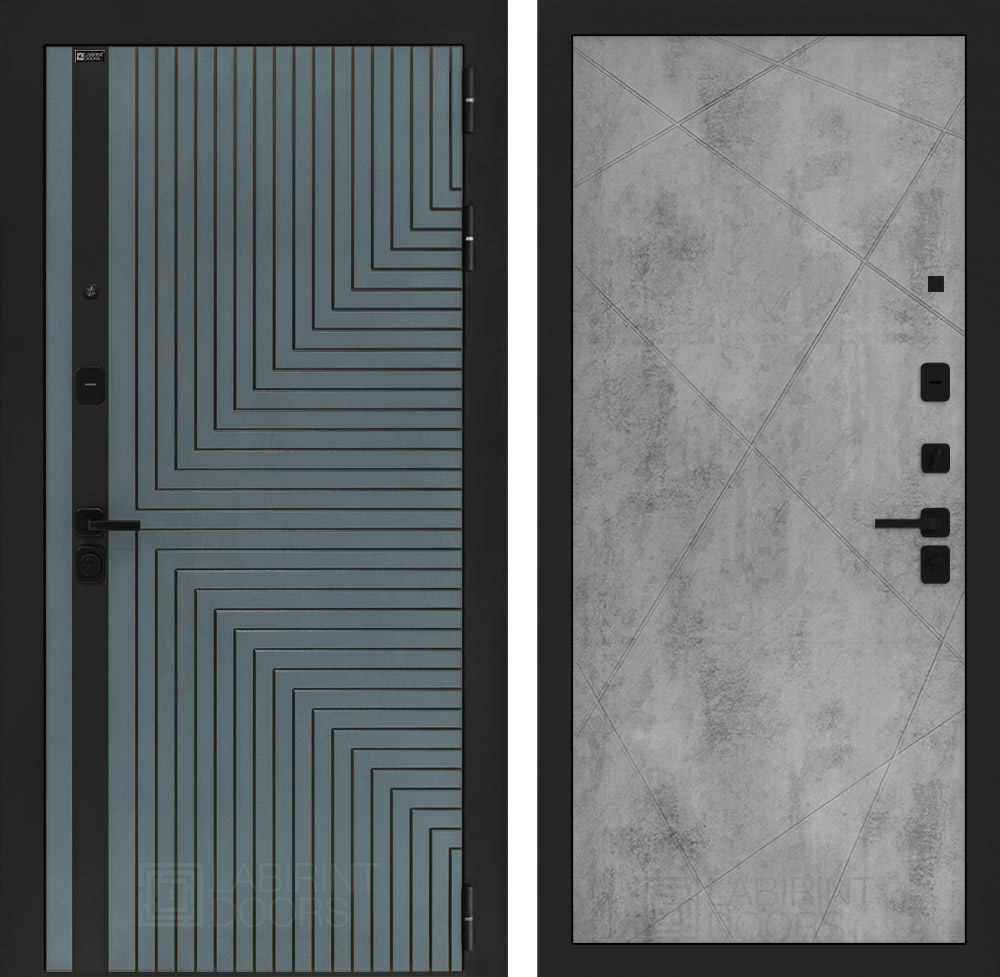Отделка снаружи: Фрезерованная МДФ панель 10 мм, цвет «Velutto Verde» с патиной и вставкой из металла в цвет наличника
