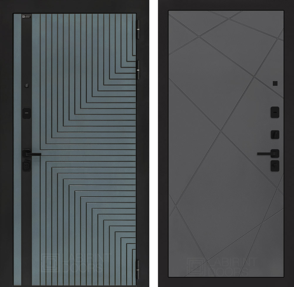 Отделка снаружи: Фрезерованная МДФ панель 10 мм, цвет «Velutto Verde» с патиной и вставкой из металла в цвет наличника
