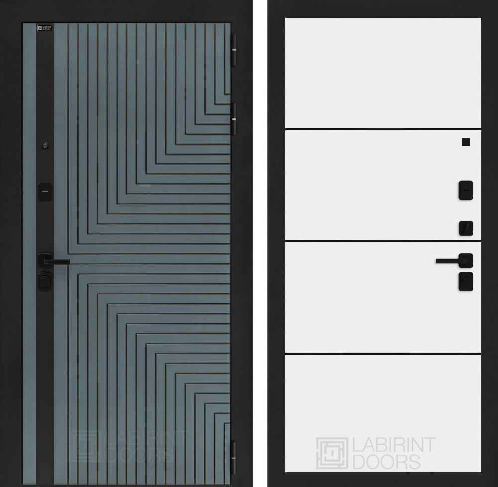 Отделка снаружи: Фрезерованная МДФ панель 10 мм, цвет «Velutto Verde» с патиной и вставкой из металла в цвет наличника