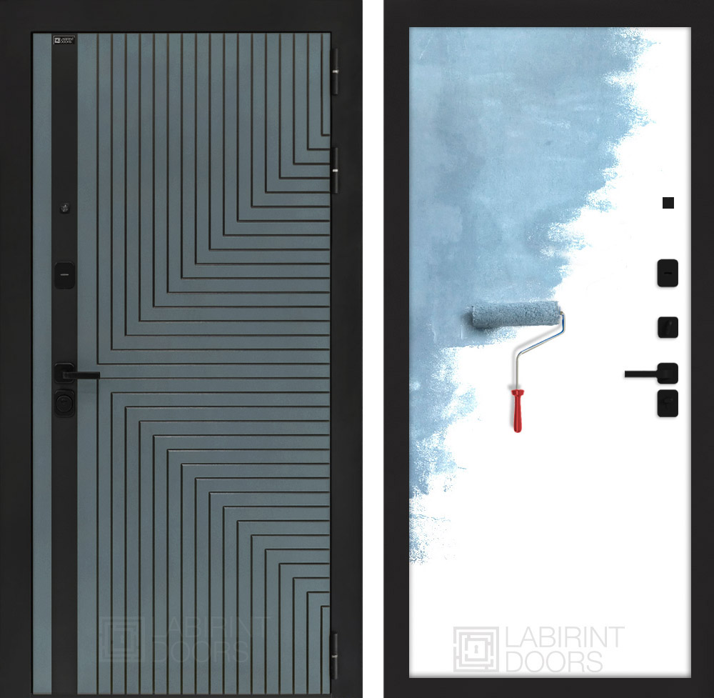 Отделка снаружи: Фрезерованная МДФ панель 10 мм, цвет «Velutto Verde» с патиной и вставкой из металла в цвет наличника