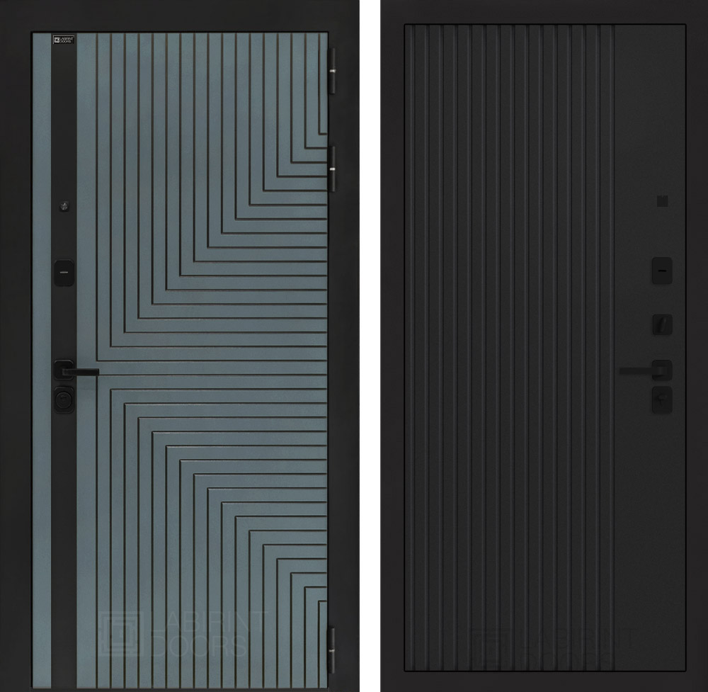Отделка снаружи: Фрезерованная МДФ панель 10 мм, цвет «Velutto Verde» с патиной и вставкой из металла в цвет наличника