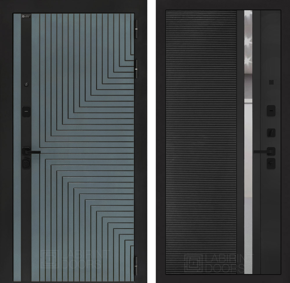 Отделка снаружи: Фрезерованная МДФ панель 10 мм, цвет «Velutto Verde» с патиной и вставкой из металла в цвет наличника
