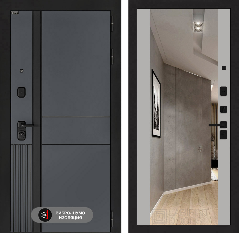 Внутренняя отделка: Декоративная MDF панель 12 мм с широким зеркалом, цвет «Софт Грей» (без текстуры)
