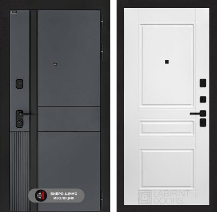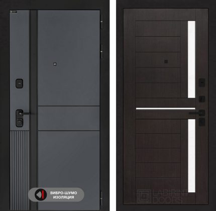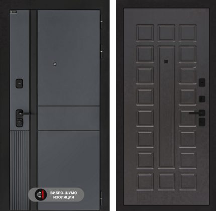 Отделка снаружи=’Фрезерованная МДФ панель 10 мм, цвет «Velluto Oscuro» с патиной и вставкой из металла в цвет наличника’