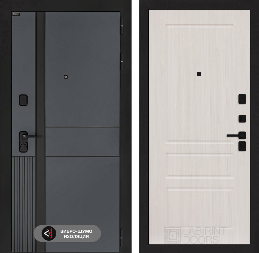 Полный комплект: Фурнитура в черном цвете: Броненакладка врезная, накладка со шторкой, глазок , дверная ручка, ночная задвижка. Цилиндр ключ-вертушка (производитель не регламентируется), регулируемый эксцентрик.
