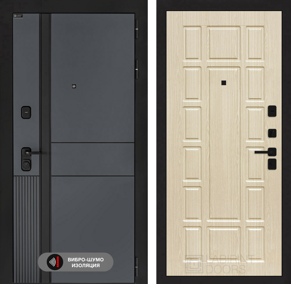 Полный комплект: Фурнитура в черном цвете: Броненакладка врезная, накладка со шторкой, глазок , дверная ручка, ночная задвижка. Цилиндр ключ-вертушка (производитель не регламентируется), регулируемый эксцентрик.