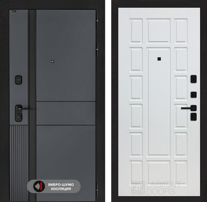 Отделка снаружи=’Фрезерованная МДФ панель 10 мм, цвет «Velluto Oscuro» с патиной и вставкой из металла в цвет наличника’