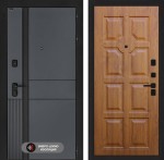 Отделка снаружи: Фрезерованная МДФ панель 10 мм, цвет «Velluto Oscuro» с патиной и вставкой из металла в цвет наличника