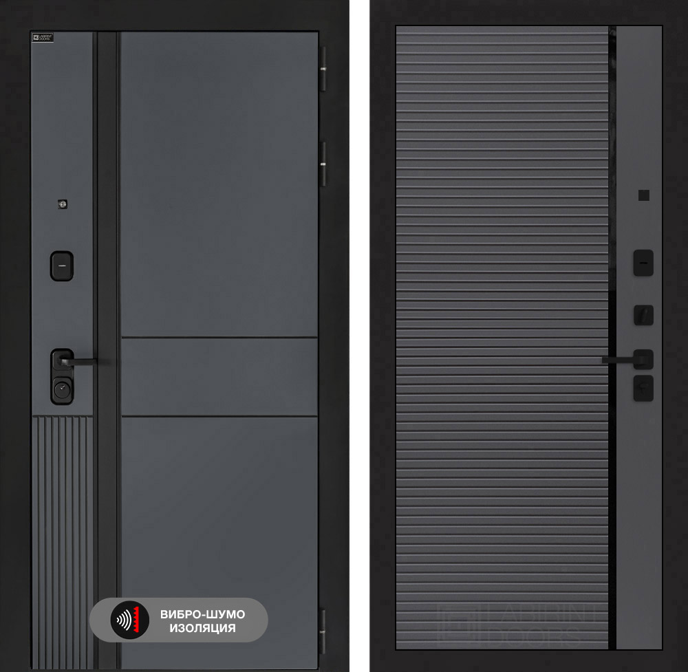 Полный комплект: Фурнитура в черном цвете: Броненакладка врезная, накладка со шторкой, глазок , дверная ручка, ночная задвижка. Цилиндр ключ-вертушка (производитель не регламентируется), регулируемый эксцентрик.