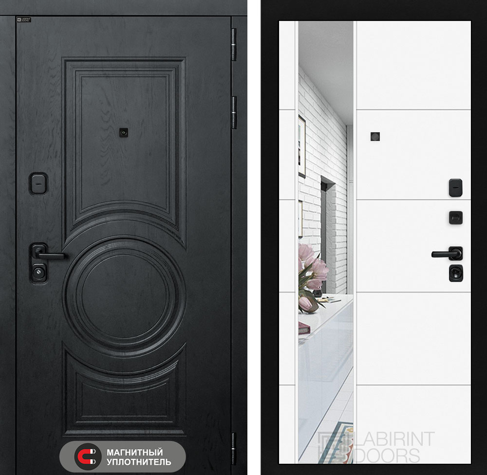Входная дверь GRAND с Зеркалом 19 — Белый софт