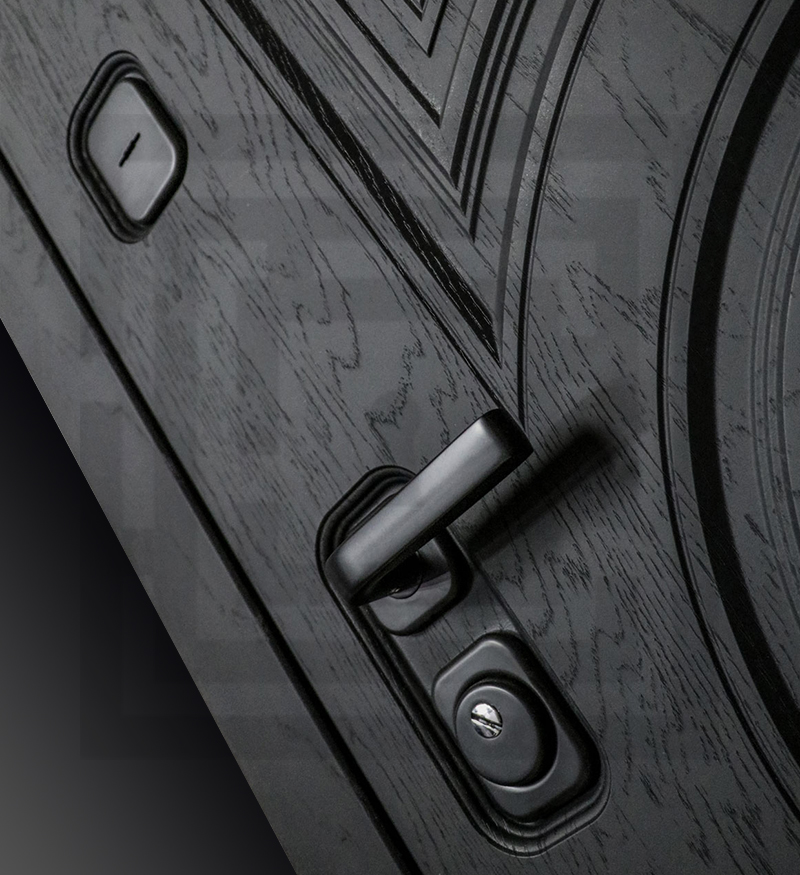 Полный комплект: Фурнитура в черном цвете: Броненакладка врезная, накладка со шторкой, глазок , дверная ручка, ночная задвижка. Цилиндр ключ-вертушка (производитель не регламентируется), регулируемый эксцентрик.’