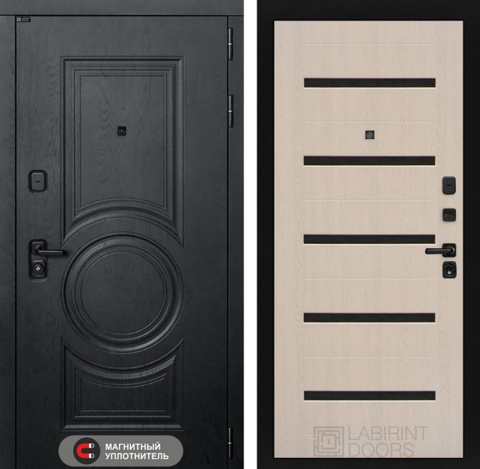 Входная дверь GRAND 02 - Сандал белый, стекло черное