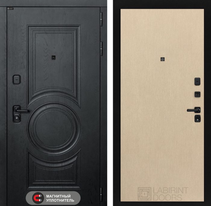 Входная дверь GRAND 02 — Сандал белый, стекло черное