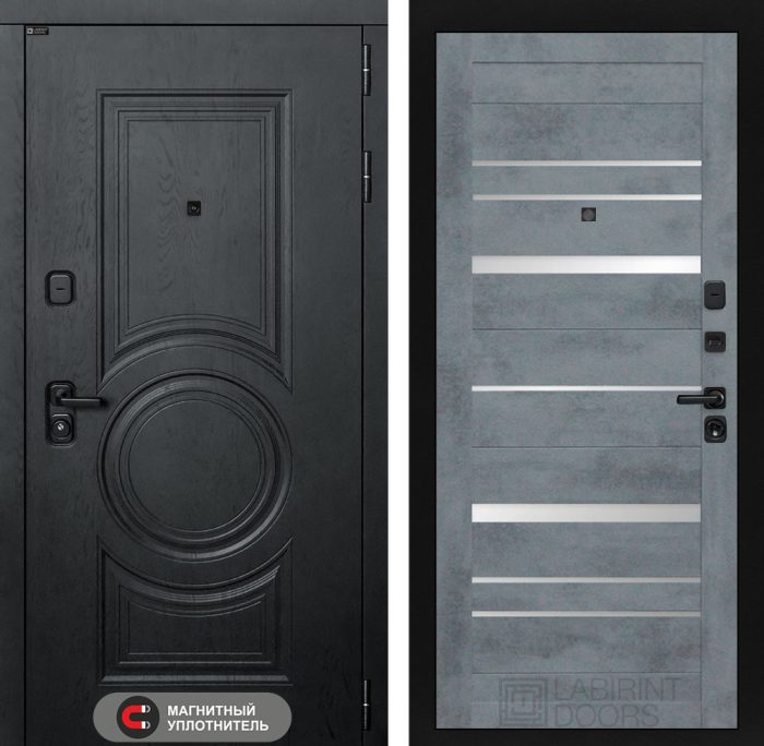Главная Двери премиум GRAND Входная дверь GRAND 20 — Бетон темный, зеркальные вставки
