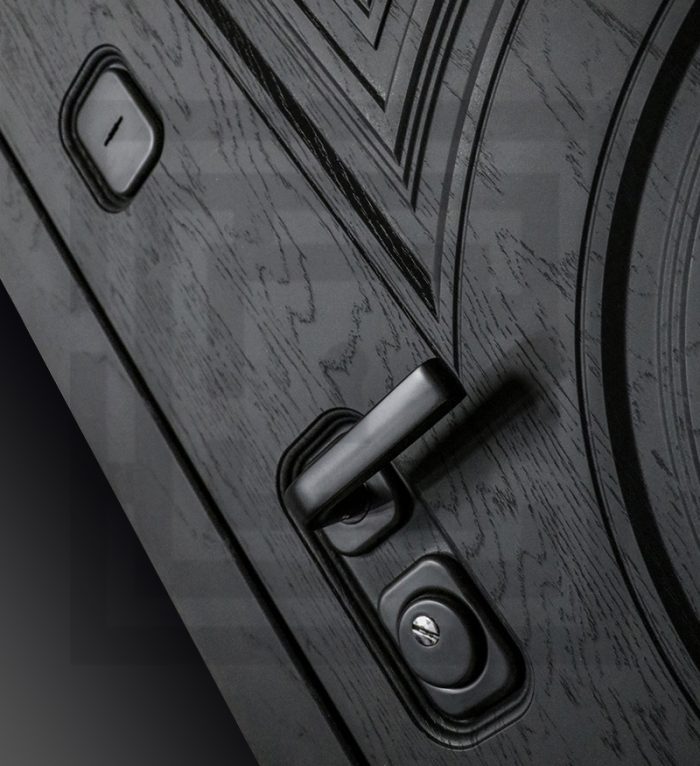 Полный комплект=’Фурнитура в черном цвете: Броненакладка врезная, накладка со шторкой, глазок , дверная ручка, ночная задвижка. Цилиндр ключ-вертушка (производитель не регламентируется), регулируемый эксцентрик.’