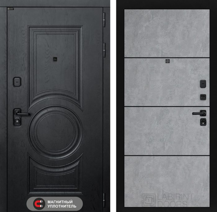 Входная дверь GRAND 25 — Бетон светлый, черный молдинг