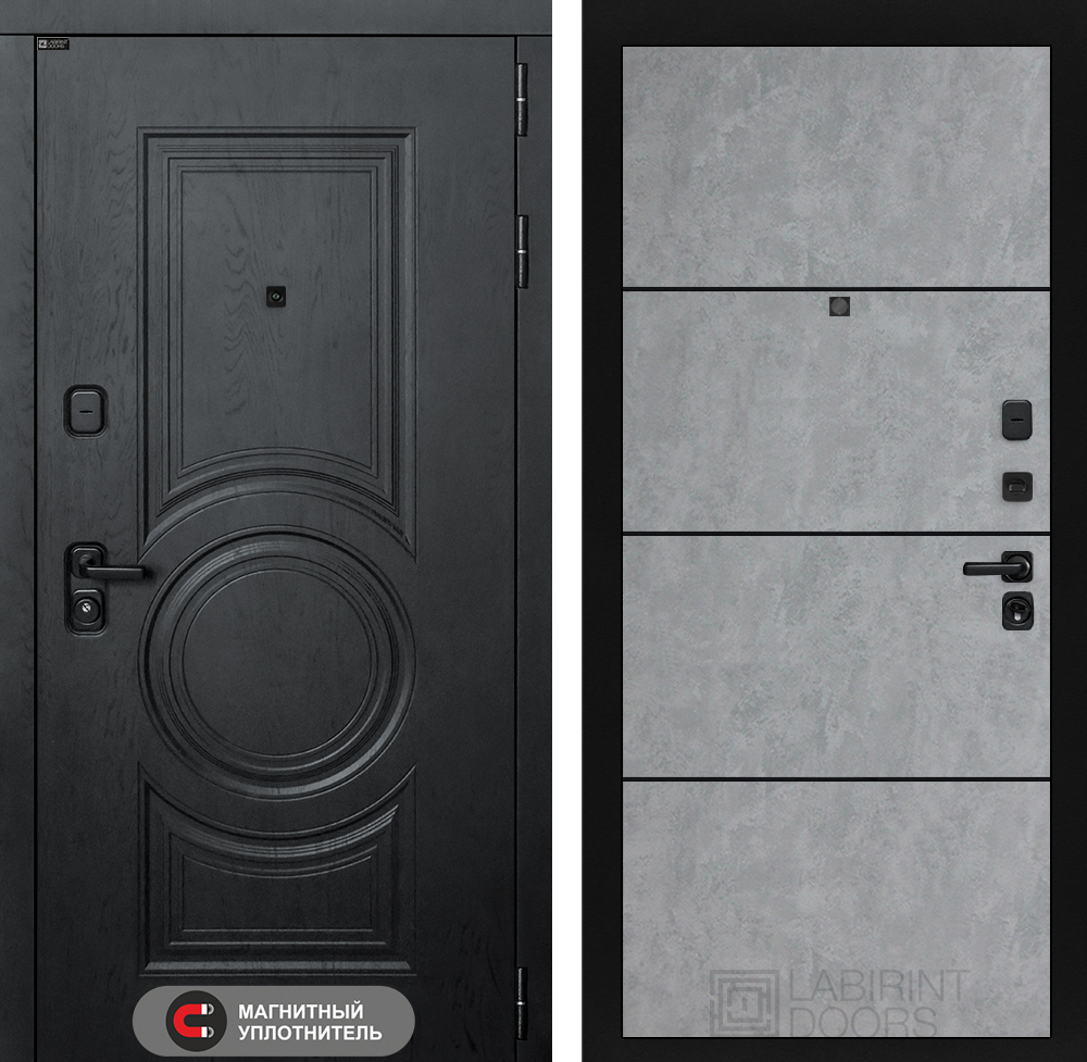 Главная Двери в квартиру GRAND Входная дверь GRAND 25 — Бетон светлый, черный молдинг