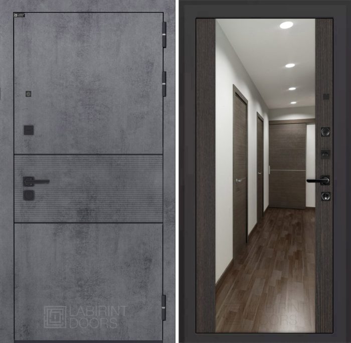 Отделка снаружи=’Современная MDF панель 10 мм с наличником, цвет «Бетон темный», вставка черный молдинг’