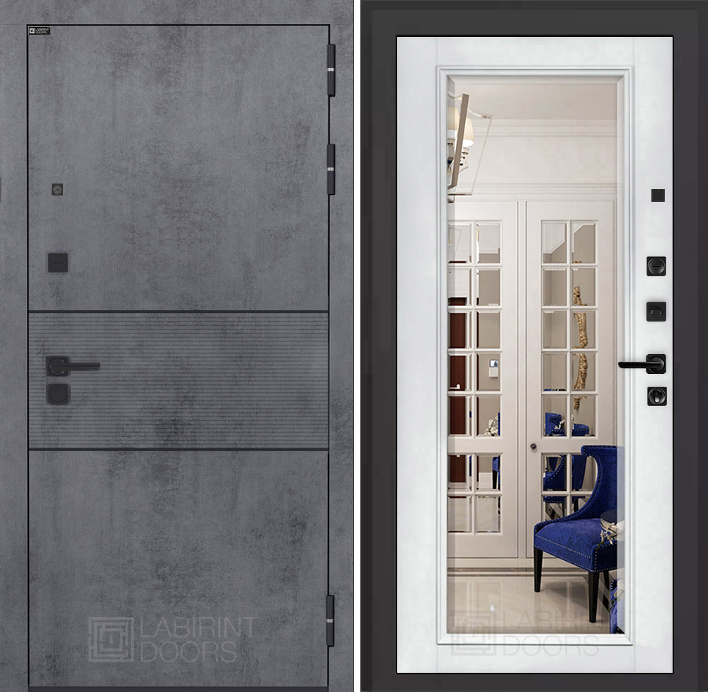 Отделка снаружи: Современная MDF панель 10 мм с наличником, цвет «Бетон темный», вставка черный молдинг